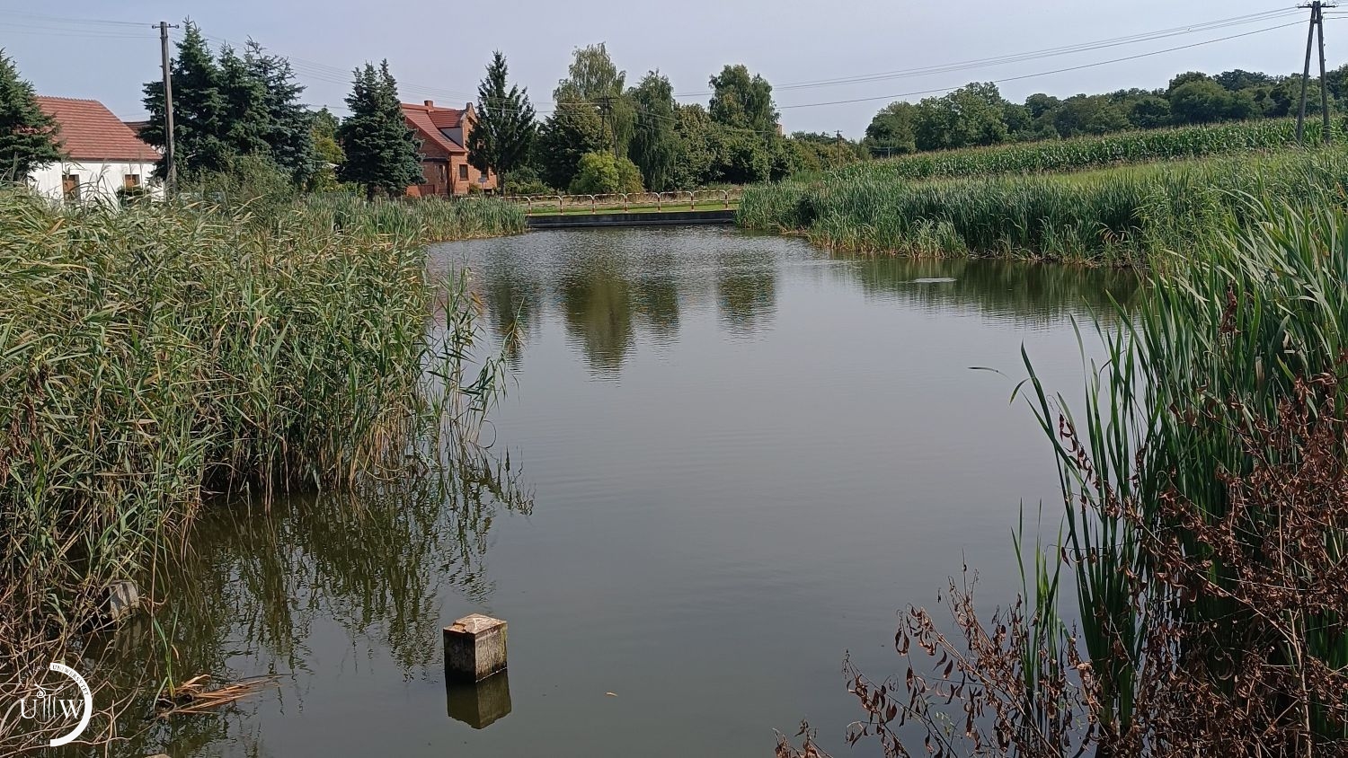 Znajdujący się po drugiej stronie drogi staw straszy zarośniętą zielenią, resztkami po zerwanym pomoście, a było tak pięknie…