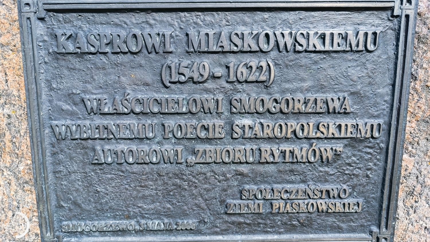 Zatrzymujemy się w Smogorzewie. Tutaj właśnie w roku 1549 urodził się Kasper Miaskowski, herbu Leliwa, jeden z pierwszych polskich pisarzy barokowych. Przez niektórych badaczy literatury oceniany wyżej od Jana Kochanowskiego. Był synem szlachcica. Uczył się najpierw w domu, potem w szkole benedyktyńskiej w Lubiniu, następnie w kolegium Lubrańskiego w Poznaniu. Znał dobrze biblię, historię starożytną i mitologię. Przez całe życie mieszkał w rodzinnych stronach. Ożenił się w wieku 40 lat. Pisał wiersze, które opiewają Mękę Pańską, przypominają o śmierci, wzywają do pokuty, zagrzewają do wojny z Turcją, domagają się wzmocnienia władzy królewskiej, opisują wydarzenia z życia poety, uświetniają śluby, pogrzeby i rocznice znajomych. W 1612 roku po raz pierwszy wydany został zbiór jego wierszy pt. „Zbiór rytmów”, wznawiany później jeszcze kilkakrotnie. Zapoznałyśmy się z trzema jego wierszami pt. „Młodzianki”, „Na śklenicę malowaną” i „Kalliope”. Społeczeństwo Ziemi Piaskowskiej postawiło Kasprowi Miaskowskiemu w jego rodzinnej wsi pomnik. Zmarł 22 kwietnia 1622 roku. Został pochowany w Strzelcach Wielkich. Napisane przez niego epitafium zostało przez jego żonę umieszczone na tablicy znajdującej się wewnątrz kościoła św. Marcina z Tours. Miałyśmy okazję je oglądać w roku ubiegłym podczas pobytu w tej świątyni.