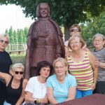 7 sierpnia, czwartek, fontanna w plantach, 7 rowerzystek na starcie. Dziś ruszamy śladami Kaspra Miaskowskiego. Ale przedtem jesteśmy umówione z Darią, która ma swój warsztat pracy w Drzęczewie Pierwszym na jagodzianki. Pani Daria prowadzi Krainę Słodkości.