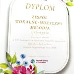 Była również niespodzianka. Wkroczyła orkiestra dęta, która zagrała kilka utworów i wspólnie zaśpiewaliśmy STO LAT. Następnie rozpoczęły się życzenia od uczestniczących zespołów. W imieniu naszego Gostyńskiego Uniwersytetu oraz zespołu „Melodia” życzenia złożyli Krystyna Adamczak i Henryk Nowak. Wręczyli również przygotowany wcześniej koszyczek rozmaitości z kwiatami i życzeniami. Po części oficjalnej na sali pojawił się tort urodzinowy, który panowie z firmy gastronomicznej bardzo zręcznie rozdzielili wśród uczestników.