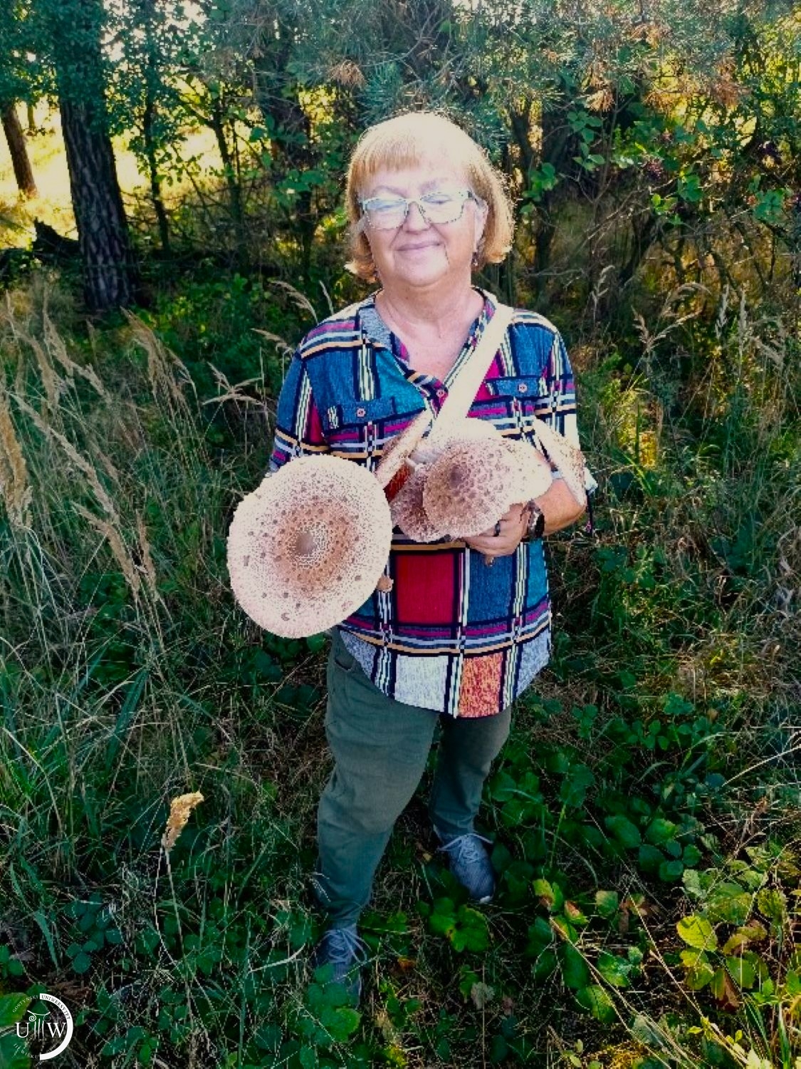 Dawno nie byłyśmy w lesie. Wszystkie z aplauzem przyjęły ten plan. Las powitał nas cudownym klimatem, ciszą. Szłyśmy w kierunku Goli. Ostatnie kroki stawiałyśmy wzdłuż torów kolejowych czy wręcz po torach. Zapomniałabym o małej niespodziance jaką zaoferował nam las: znalazłam kilka pięknych, wysmukłych kani. Jedna z nich była ogromna. Czy zmieści się na patelnię?