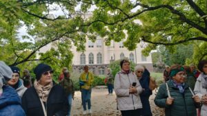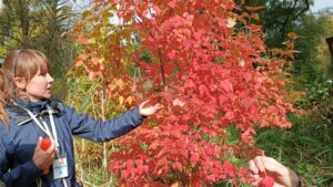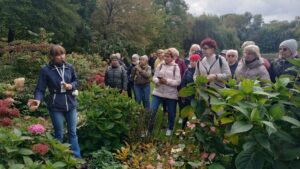 7 października 2025 roku 35-osobowa grupa studentek autokarem wybrała się do Kórnika. Celem naszym było zwiedzenie ogrodu dendrologicznego jesienią z przewodnikiem, panią Katarzyną Broniewską. Panią Kasię poznałyśmy w maju kiedy oprowadzała nas po kwitnących magnoliach, azaliach, rododendronach. Dziś w miejsce kwiatów, choć i te można spotkać, na drzewach pojawiają się owoce i nasiona. W arboretum kórnickim rośnie ponad 3500 gatunków drzew. Zafascynowane, chłoniemy wiedzę z ust pani Katarzyny. Dowiadujemy się wielu ciekawych rzeczy, poznajemy nieznane drzewa, zachwycamy się owocami i nasionami.