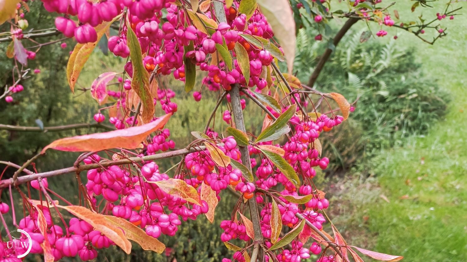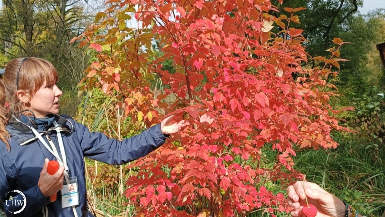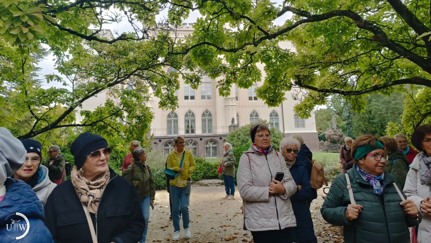 7 października 2025 roku 35-osobowa grupa studentek autokarem wybrała się do Kórnika. Celem naszym było zwiedzenie ogrodu dendrologicznego jesienią z przewodnikiem, panią Katarzyną Broniewską. Panią Kasię poznałyśmy w maju kiedy oprowadzała nas po kwitnących magnoliach, azaliach, rododendronach. Dziś w miejsce kwiatów, choć i te można spotkać, na drzewach pojawiają się owoce i nasiona. W arboretum kórnickim rośnie ponad 3500 gatunków drzew. Zafascynowane, chłoniemy wiedzę z ust pani Katarzyny. Dowiadujemy się wielu ciekawych rzeczy, poznajemy nieznane drzewa, zachwycamy się owocami i nasionami.