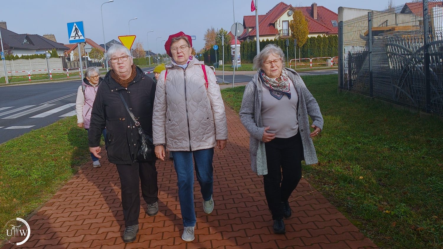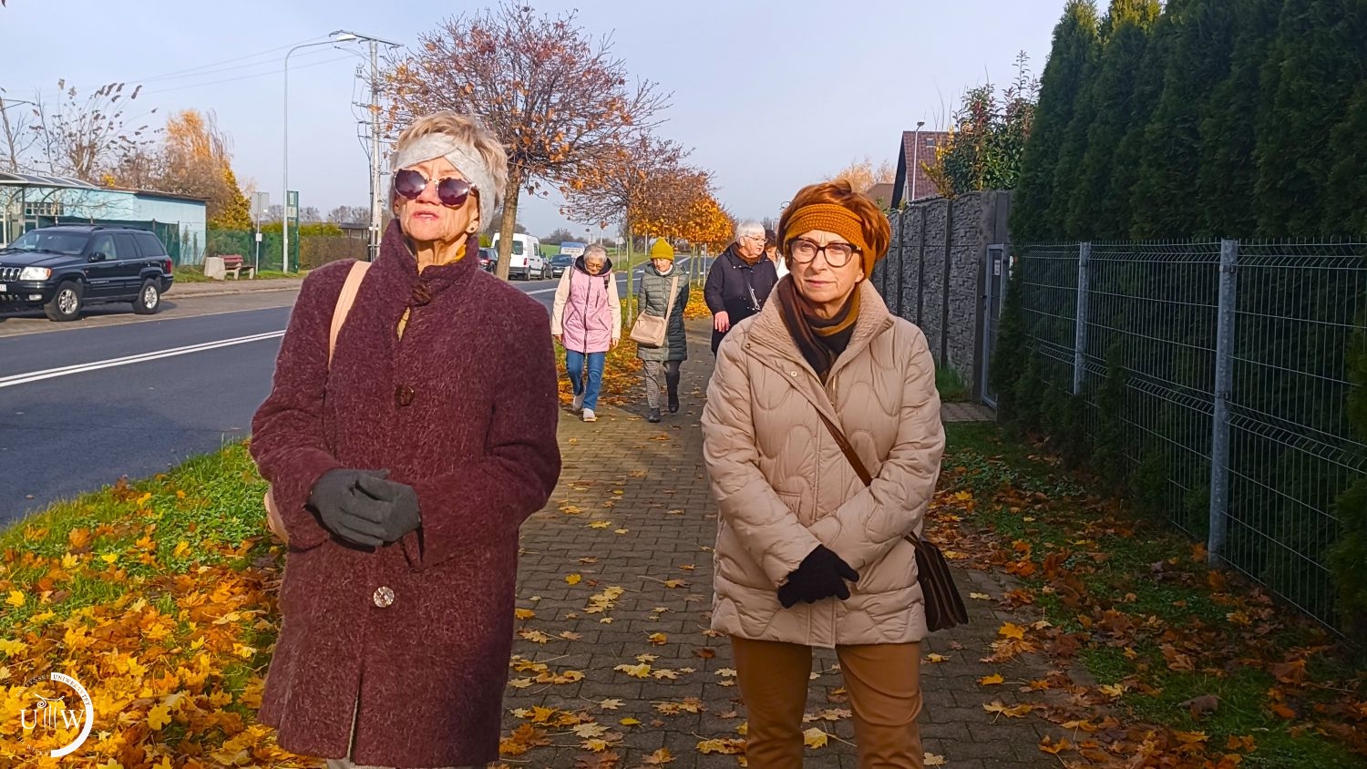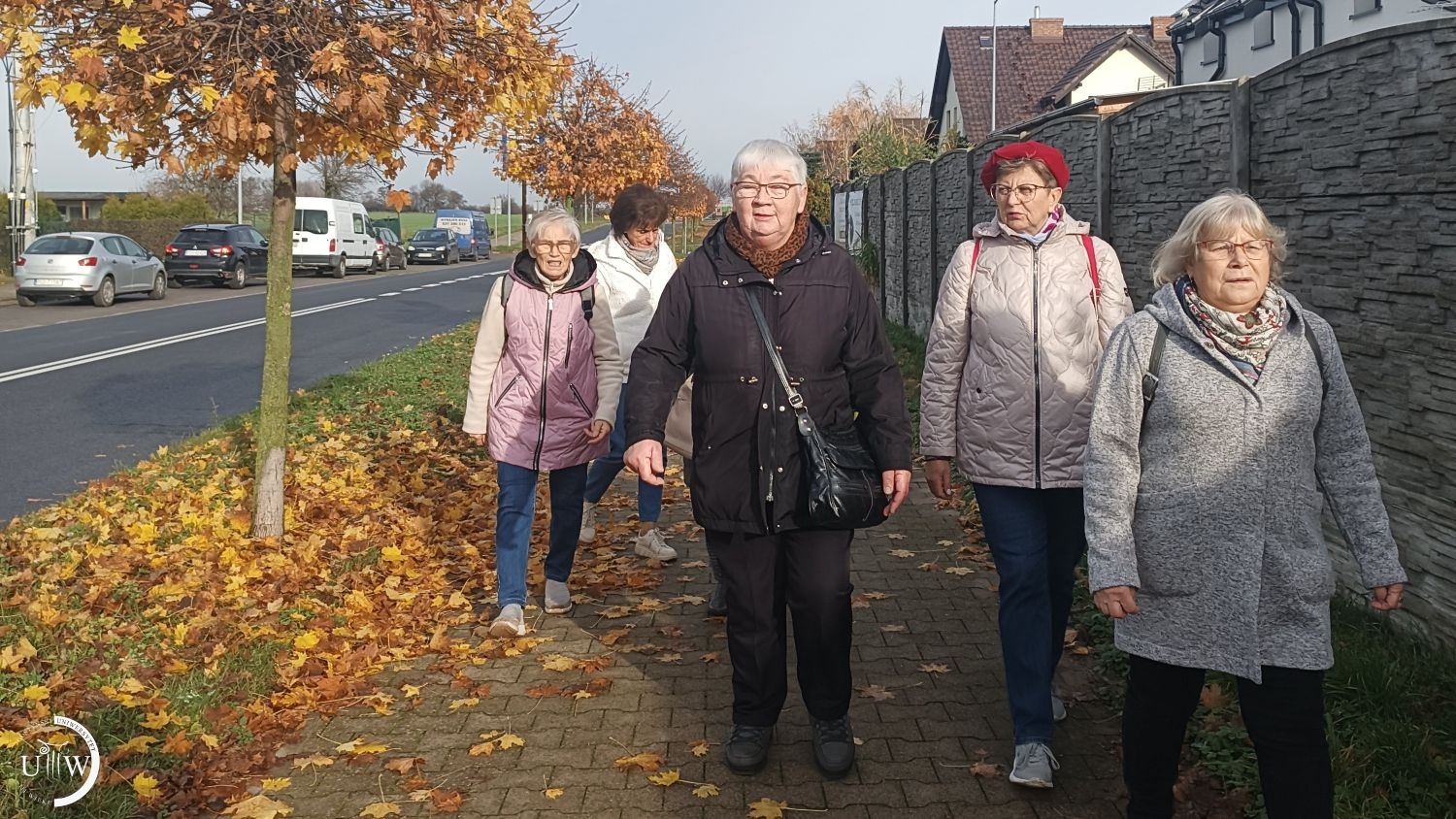Niektórzy nie lubią jesieni, ale tylko w tym okresie czasu można zobaczyć jak zmienia się nasza przyroda i jak piękne otaczają nas kolory. Dzisiejszy spacer, 12 listopada 2025 roku, zaszczyciło swoją obecnością 9 osób. Mamy nową koleżankę spacerową, Grażynę. Witamy serdecznie.