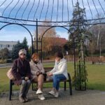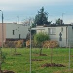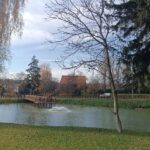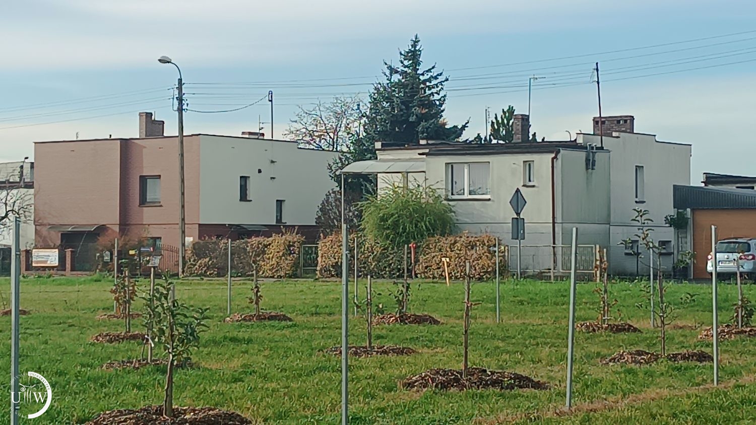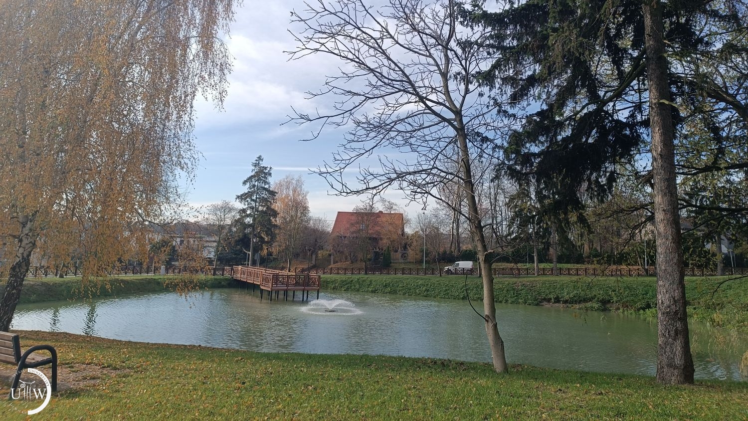 Brodzimy wśród opadłych, żółto-brązowych liści, urzeka nas kolorem śnieguliczka różowa, wielkością rabarbar olbrzymi, kolonie grzybów, niestety trujących. Obok Środowiskowego Domu Samopomocy ogrodzony płotem, zapewne przed zwierzętami, rośnie sobie sad owocowy, z którego każdy będzie mógł sobie urwać owoc do zjedzenia. Ulicami Psarskiego, Potworowskich i Chłapowskiego dochodzimy nad staw z czynną jeszcze fontanną, drewnianym „molo”, altanką, która za kilka lat zapełni się zielenią.
