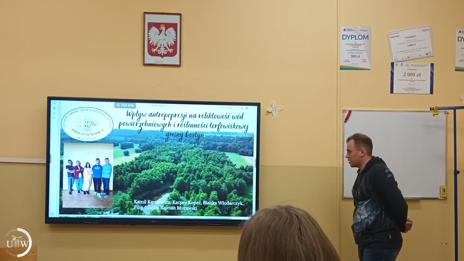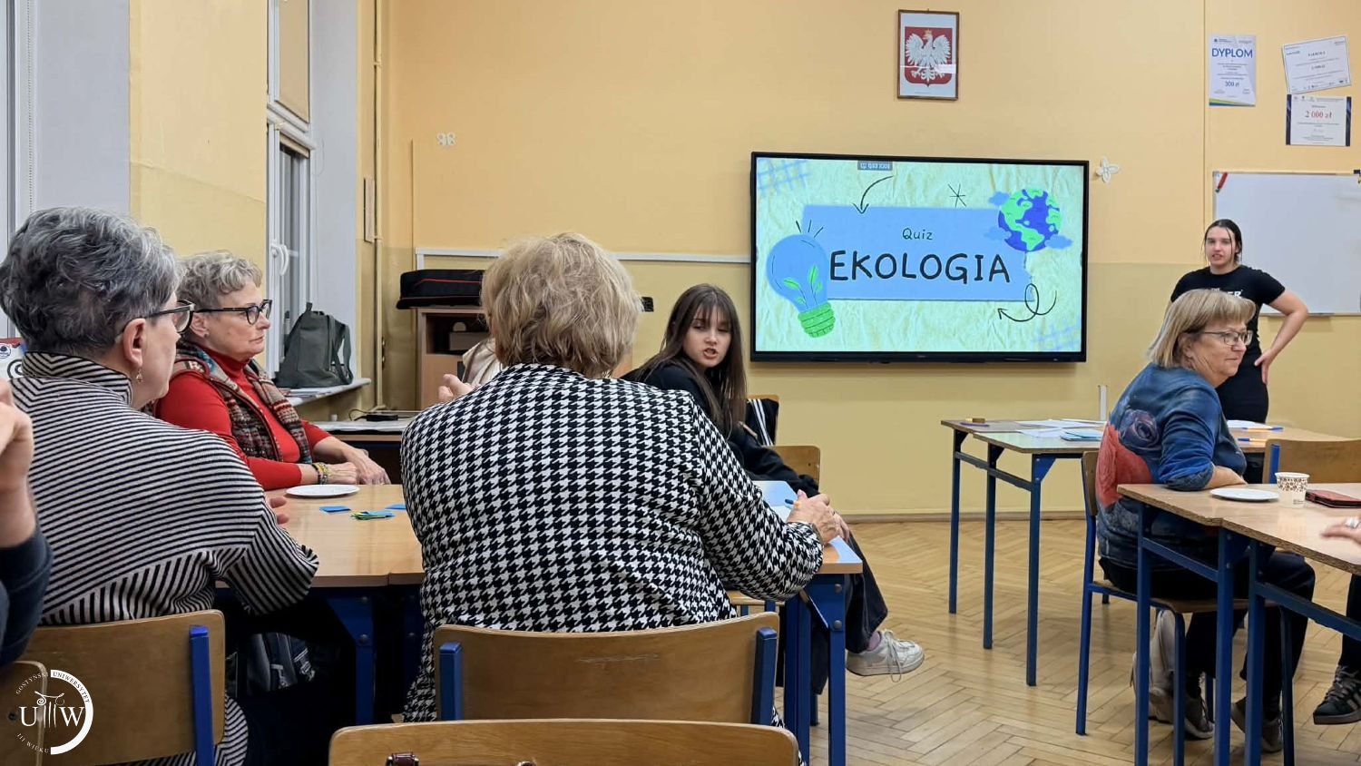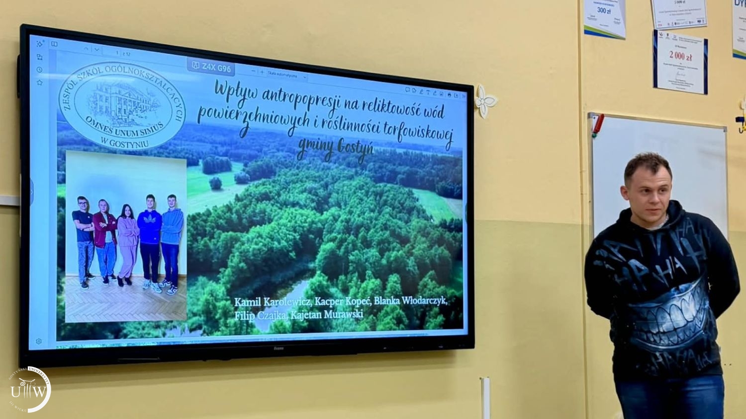 Młodzież z Liceum w Gostyniu razem ze swoją Panią profesor zaprosiła studentów Uniwersytetu Trzeciego Wieku na Debatę oxfordzką, w formie międzypokoleniowej zabawy ekologicznej. Najpierw uczniowie na boisku szkolnym zaprezentowali działanie drona do określania zanieczyszczeń powietrza. Niestety urządzenie wykazało ponad normatywne zanieczyszczenie powietrza w Gostyniu.