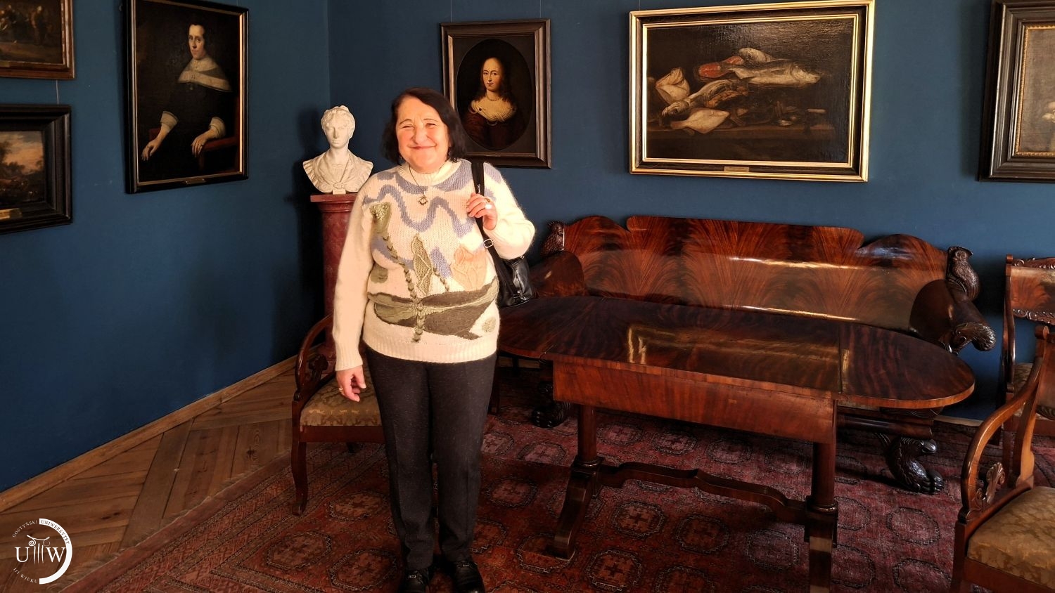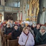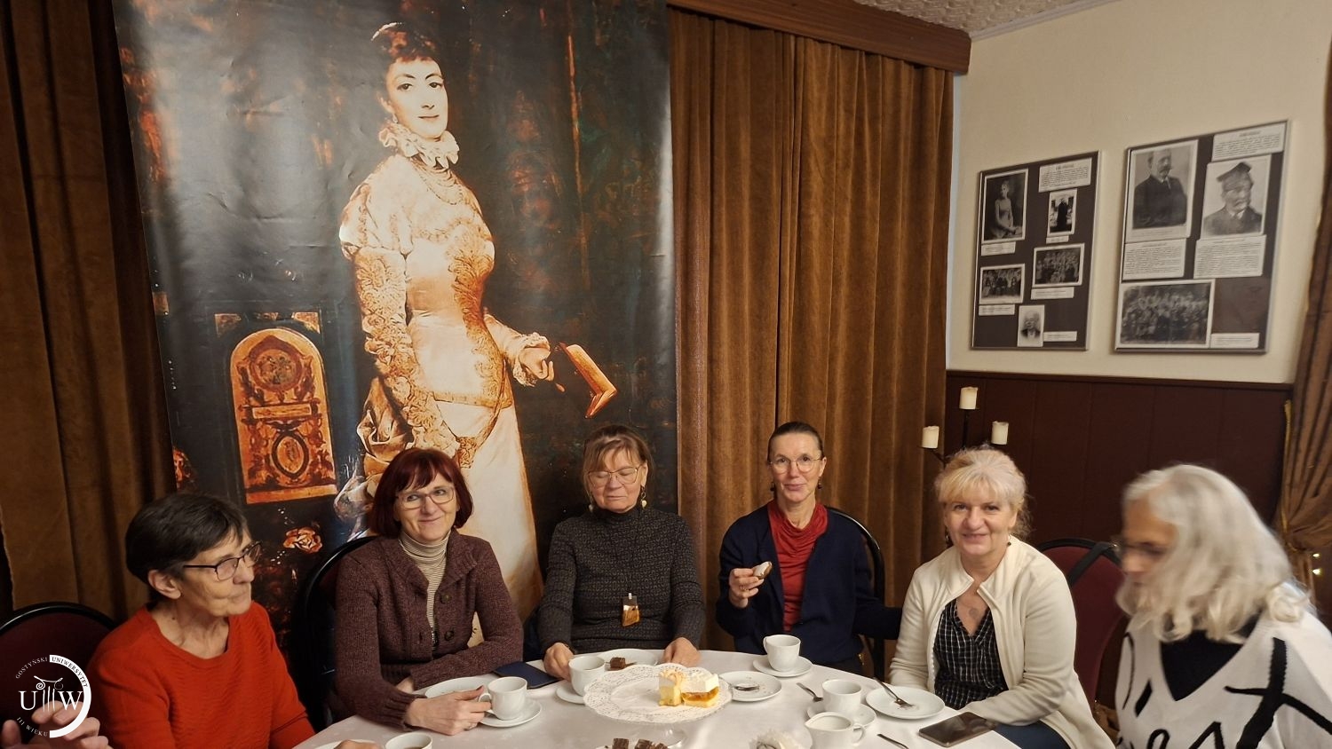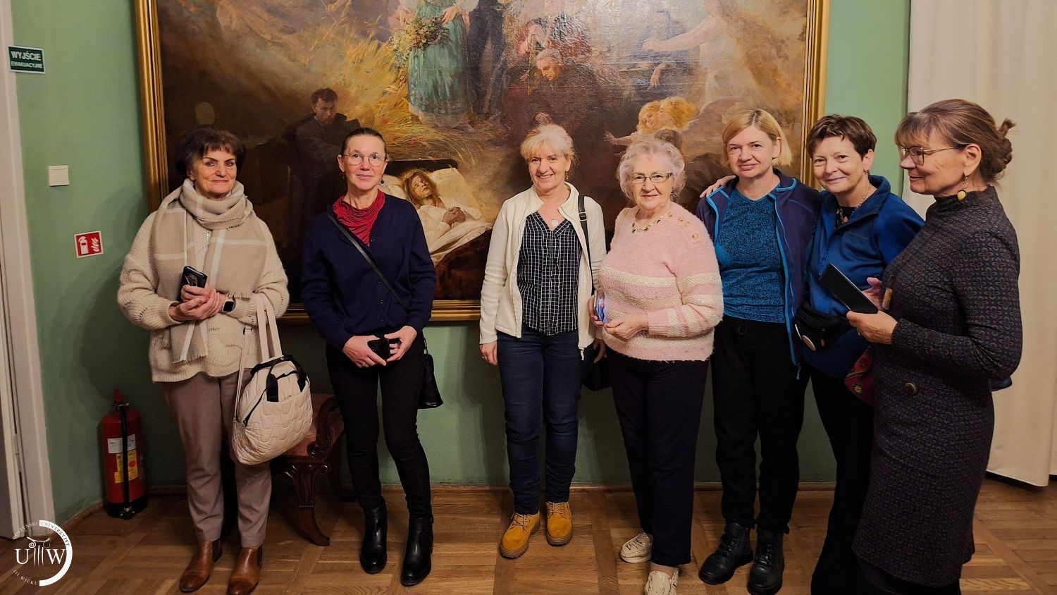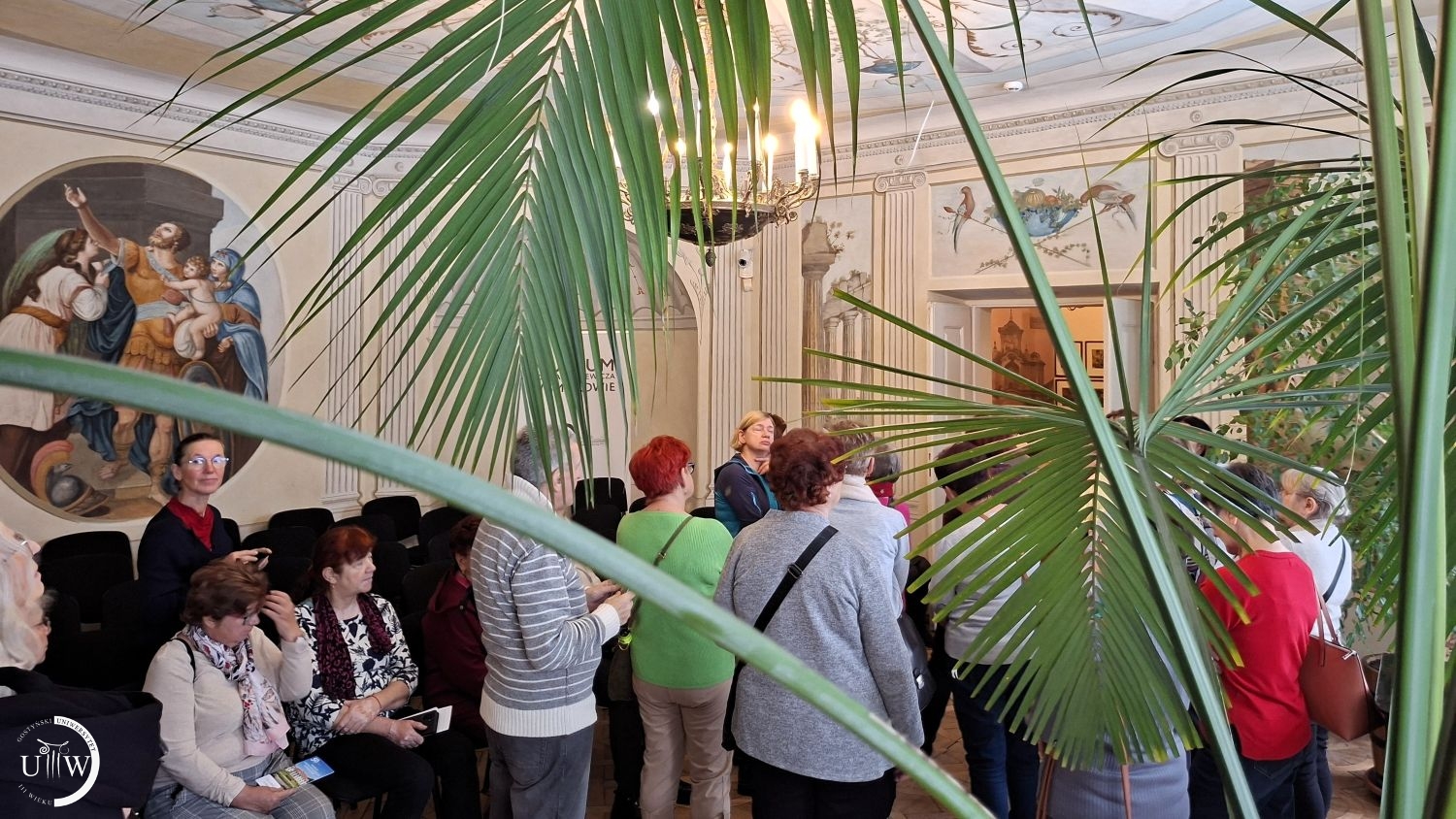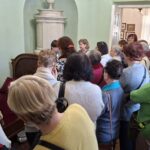 Na zakończenie koleżanka Ola poprosiła, aby pomodlić się za zdrowie naszej najstarszej studentki Marii, która doznała poważnych urazów. Wszyscy razem w modlitewnym skupieniu, poprosiliśmy odmawiając dziesiątkę różańca Matkę Boską w cudownym obrazie o jej powrót do zdrowia. Kończymy naszą wizytę, oglądamy jeszcze zabytkowe nagrobki na przy kościelnym cmentarzyku i pieszo udajemy się do pobliskiego Ośrodka Kultury.