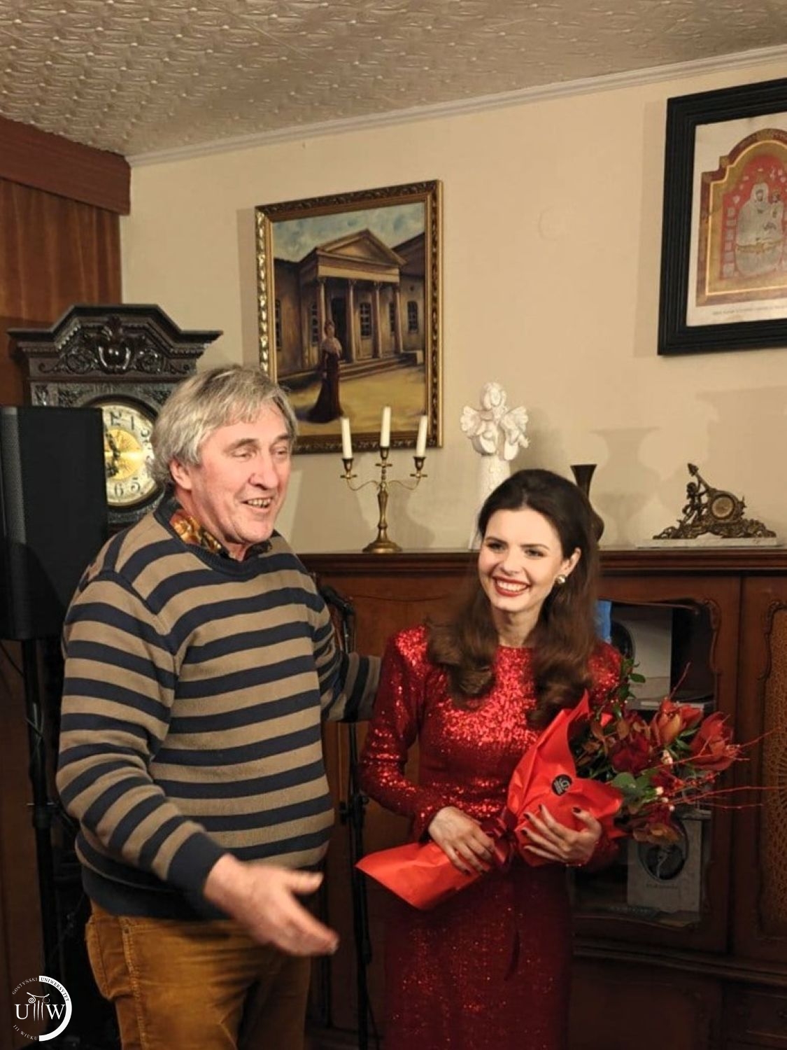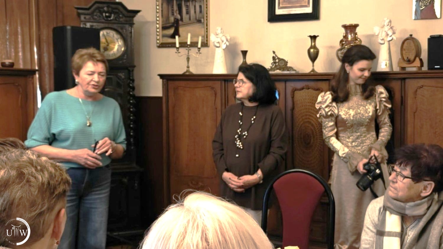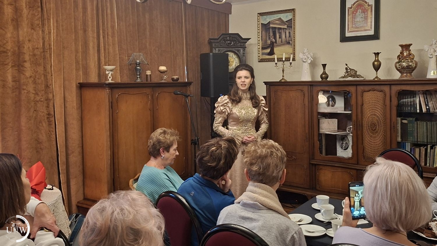 Po drodze do Ośrodka Kultury w Żegocinie oglądamy dwie rzeźby Józefa Chłapowskiego i żony Teofili Chłapowskiej właścicieli pałacu, w którym wielokrotnie gościła szwagierka Józefa, Helena Modrzejewska. Celem naszej wizyty jest wysłuchanie wykładu o najsłynniejszej polskiej aktorce Helenie Modrzejewskiej (1840-1909). Prelekcja odbędzie się w saloniku poświęconym artystce. Wchodzimy do środka w tym momencie rozpoczyna się niezwykła magia spotkania. Przy fortepianie pianistka Katarzyna Zawada, która ubrana w wierną kopię sukni Modrzejewskiej wciela się w jej postać. Słyszymy harmonijne dźwięki utworów syna aktorki Rudolfa Modrzejewskiego (1861-1940), który przez jakiś czas rozważał karierę pianistyczną. Został jednak inżynierem i zasłynął jako budowniczy mostów w USA. Zostajemy ugoszczeni gorącą kawą i ciastami przygotowanymi specjalnie na naszą wizytę przez Koło Włościanek. Osobiście uważam, że jadłem najsmaczniejszy sernik w życiu nie ujmując smakowi i jakości pozostałych ciast. W między czasie opiekunka saloniku i Pani Zofia Zawada na przemian opowiadają o pobytach aktorki w Żegocinie, o darach dla miejscowego kościoła, związkach i stosunkach rodzinnych Chłapowskich. Przypominają rożne epizody z jej życia, mówią o pobycie w Ameryce, związkach z mężczyznami. Od fortepianu wstaje Pani Kasia wychodzi na środek sali i wygłasza płomiennie mowę Heleny Modrzejewskiej jaką wygłosiła w 1893 roku w Chicago podczas Światowego Kongresu Kobiet. Po kilku wypowiedzianych zdaniach w saloniku zapanowała absolutna cisza, wszyscy wsłuchani w monolog artystki. Wystąpienie jest tak sugestywne, że niektóre osoby mają łzy w oczach. Mowa Modrzejewskiej na Kongresie była wielkim aktem patriotyzmu, aktorka mówiła o roli kobiet i Polaków dążących do niepodległości. Po zmianie kreacji na piękną czerwoną suknię Pani Kasia bierze mikrofon do ręki, mama siada za konsolą a ojciec zostaje operatorem światła i zaczyna się niezwykły koncert. Pierwszą piosenką, którą wysłuchaliśmy to ,,Człowieczy los” Anny German, bowiem artystka jest laureatką Międzynarodowego konkursu im. Anny German z finałem w Moskwie. Jej dorobek artystyczny to dotychczas siedem albumów płytowych, śpiewa muzykę klasyczną przykładem jest płyta, „Ave Maria” Perły muzyki klasycznej z wykonaniem dwunastu utworów o tym samym tytule.