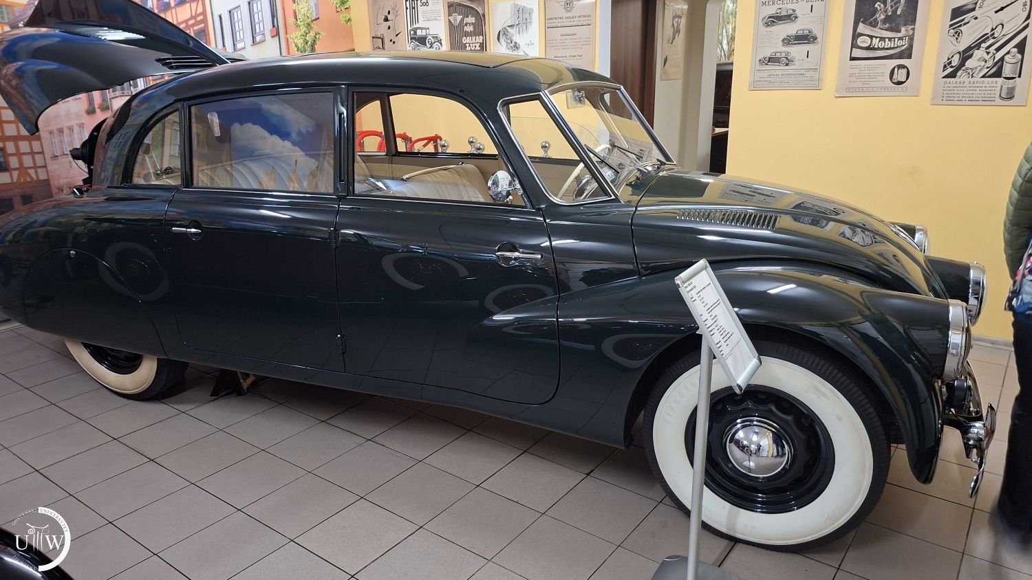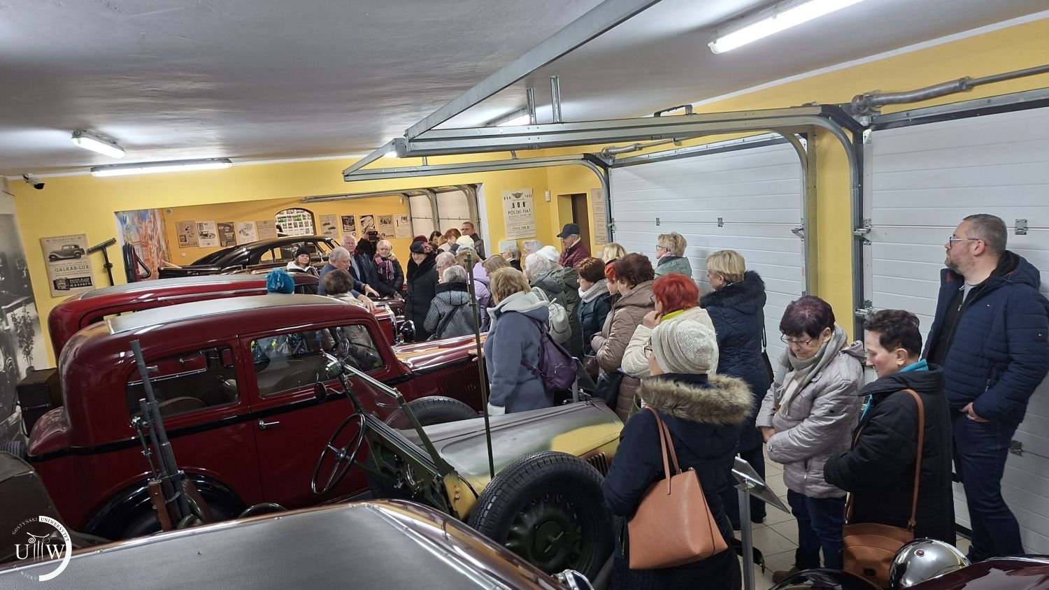 Życzliwi gospodarze postanawiają jeszcze wskazać nam drogę do następnego miejsca, które zamierzamy odwiedzić w miejscowości Józefów pilotując nasz przejazd swoim samochodem. Po kilku minutach jazdy jesteśmy na miejscu. Na swojej posesji witają nas Państwo Krystyna i Zdzisław Siereccy posiadacze kolekcji starych samochodów. Właściciel zaprasza nas do wnętrza dużego garażu, po wejściu do środka widzimy wyeksponowane pojazdy. Błyszczą w świetle lamp, wszystkie idealnie wyczyszczone, sprawne tak jakby przed chwilą opuściły fabrykę. Do każdego z pojazdów podchodzi właściciel i z niezwykłą pasją opowiada ich historię. Jesteśmy pod wrażeniem robimy sobie zdjęcia na tle pojazdów, fotografujemy sylwetki aut przenieśliśmy się na chwilę w okres między wojenny i wojny, bo pojazdy są z tego czasu. O eksponowanej dużej limuzynie czeskiej Tatry T 87 Pan Zdzisław mówi, że Hitler zabronił jeździć nią niemieckim oficerom, samochód był bardzo szybki 160 km na godzinę, luksusowy i wygodny. Silnik był umieszczony z tyłu pojazdu, co przy dużej szybkości powodowało, że stawał się nadsterowny i dochodziło do wypadków drogowych.