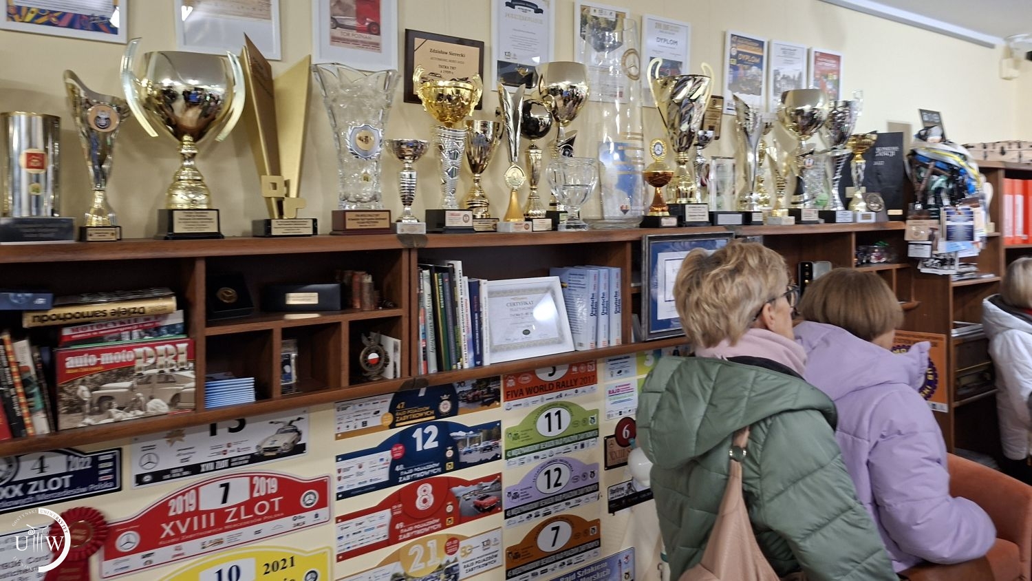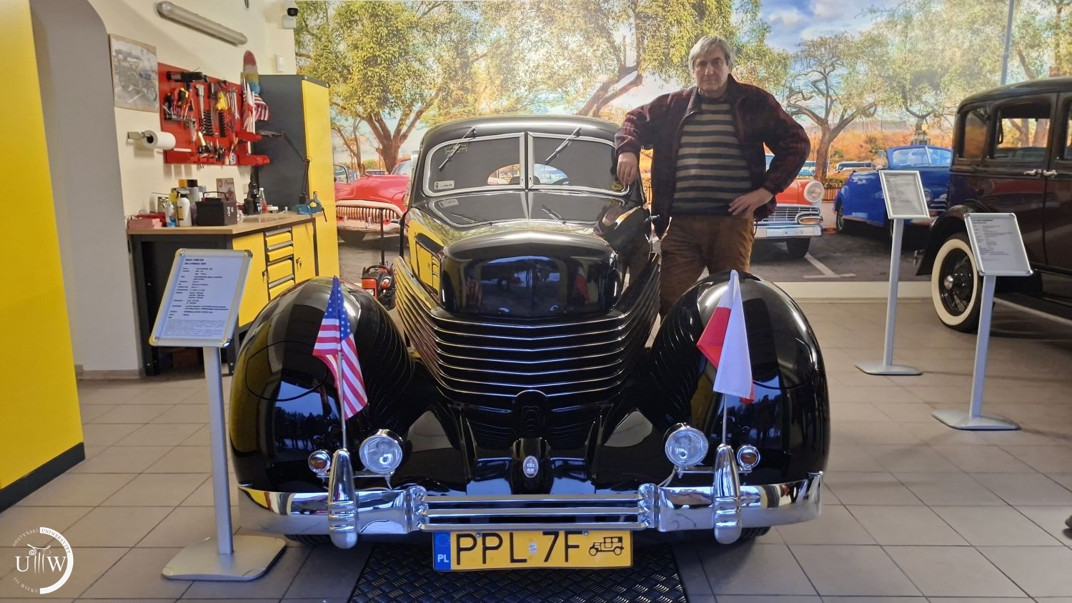 Inny przykład, o którym właściciel może mówić bardzo długo. Sprowadził go do Polski z USA w 2017 roku to jedyny egzemplarz tego auta w kraju. Cord 810 wyprodukowano tylko 1074 sztuki, jest niezwykle innowacyjny: posiada różny rozstaw osi, po raz pierwszy zastosowany przedni napęd, preselekcyjną skrzynię biegów, radio lampowe, ogrzewane wnętrze, samonośną karoserię i ta niesamowita stylizacja pojazdu. Wchodzimy do biura, gdzie są zgromadzone pamiątki i nagrody z rajdów. Na ścianie mapa a na niej oznaczone 91 krajów, które odwiedził nasz gospodarz. Czas się pożegnać. Otwartość, życzliwość i gościnność Pani Krystyny i Pana Zdzisława sprawiły, że czujemy się jakby to nie była nasza pierwsza wizyta, dziękujemy za bezinteresowność i chęć podzielnia się z innymi swoją wielką pasją.