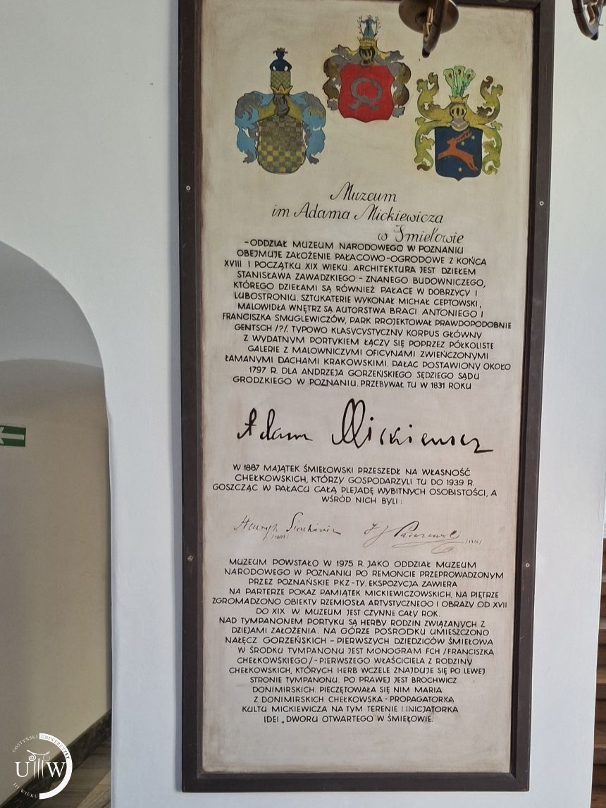 Pierwsze zwiedzanie razem z przewodnikiem odbywa się w Muzeum im. Adama Mickiewicza w Śmiełowie. Placówka muzealna znajduje się w pałacu wybudowanym na przełomie XVIII i XIX wieku na planie podkowy i jest dziełem architekta Stanisława Zawadzkiego. Budowla została wzniesiona w centrum Szwajcarii Żerkowsko-Cieszewskiej. To w tym pałacu i na terenie jego parku doszło do pamiętnego romansu Adama Mickiewicza z Konstancją Łubieńską. Tutaj gościli między innymi Henryk Sienkiewicz, Ignacy Jan Paderewski, Wojciech Kossak, gen. Józef Haller, czy prymas Edward Dalbor. W salach znajdziemy pamiątki: po Adamie Mickiewiczu, Juliuszu Słowackim, Kamilu Cyprianie Norwidzie, obrazy Jacka Malczewskiego, Jana Matejki, Józefa Ignacego Kraszewskiego oraz wiele dzieł malarzy włoskich. Bogactwo zbiorów i dzieł sztuki budzi uznanie wśród uczestników wycieczki jeszcze grupowe wspólne zdjęcie i jedziemy w stronę Żegocina.