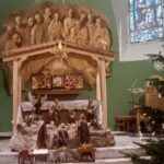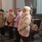 W 9-osobowym składzie zebrałyśmy się w poświątecznym, zimowym okresie 14 stycznia 2026 roku. To pierwsze spotkanie tegoroczne w zimowej odsłonie. Jak nakazuje polska tradycja należy odwiedzić żłobki w kościołach. Szłyśmy wydeptanymi, posypanymi chodnikami gdyż pogoda była poniżej zera i było ślisko. Gdzieniegdzie trzeba było jednak uważać by się nie przewrócić. Zaczęłyśmy od Kościoła Św. Ducha. W tym roku żłobek usytuowany jest nad ołtarzem głównym, po jego prawej stronie stoi piękna choinka, u stóp małe szopki zbudowane przez dzieci. Choinkę do kościoła dostarczyło Ogrodnictwo Nowackich z Brzezia, jak również ozdoby znajdujące się na niej.