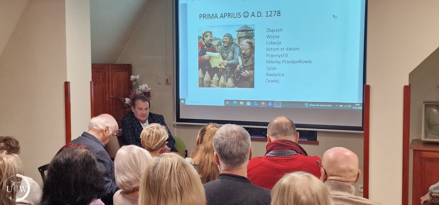 To tytuł prelekcji, jaką we wtorek, 27 stycznia 2026 roku wygłosił Przemysław Pawlak, historyk, miłośnik średniowiecza i gawędy o przeszłości, dla licznie zgromadzonej publiczności w gostyńskim Muzeum. Wśród podejmowanych tematów znalazły się: Prima Aprilis w dniu lokacji miasta, historia gostyńskich łaźni miejskich w średniowieczu, postać Wojciecha Długoraja (1557/1558-po 1619) – muzyka i spiskowca, szkoccy imigranci, proceder przemytu wołów z Gostynia do Głogowa, pomówienia o czary i tego konsekwencje, walka z heretykami, wielki pożar Gostynia w 1811 roku oraz sylwetka asa lotniczego Antoniego Katarzyńskiego, który przyszedł na świat w grodzie nad Kanią. Organizatorami wykładu byli Gostyński Uniwersytet Trzeciego Wieku oraz Muzeum w Gostyniu.