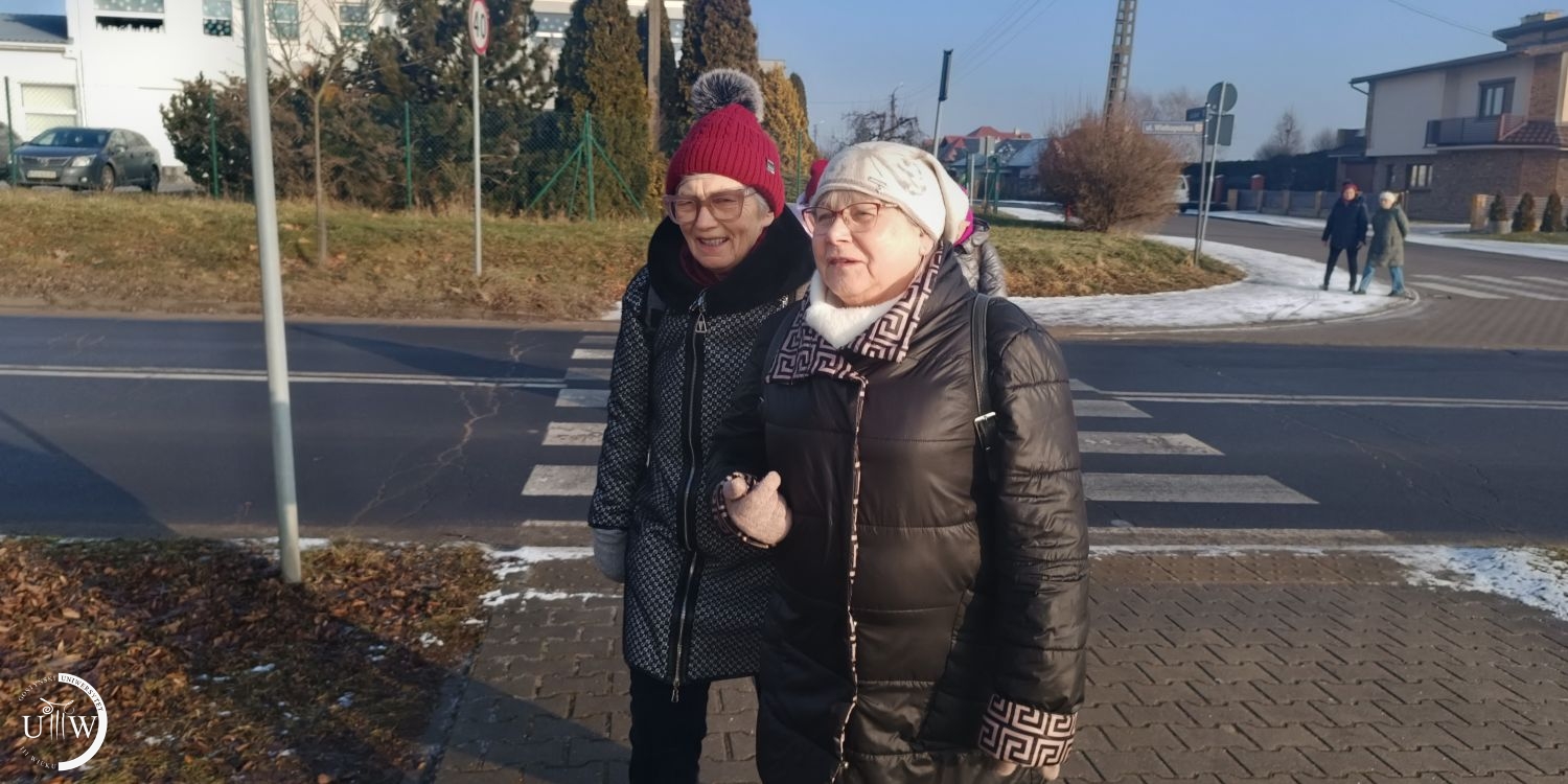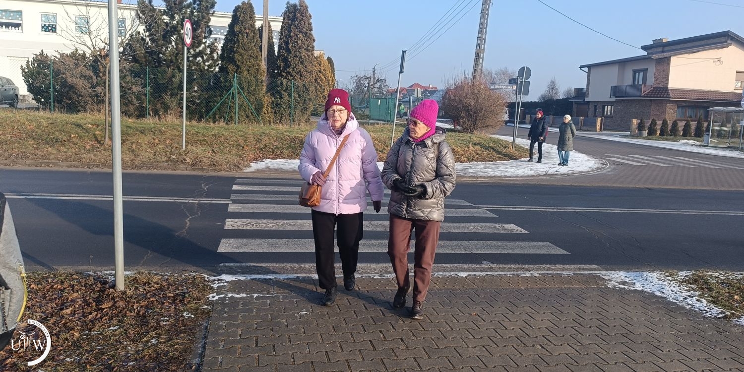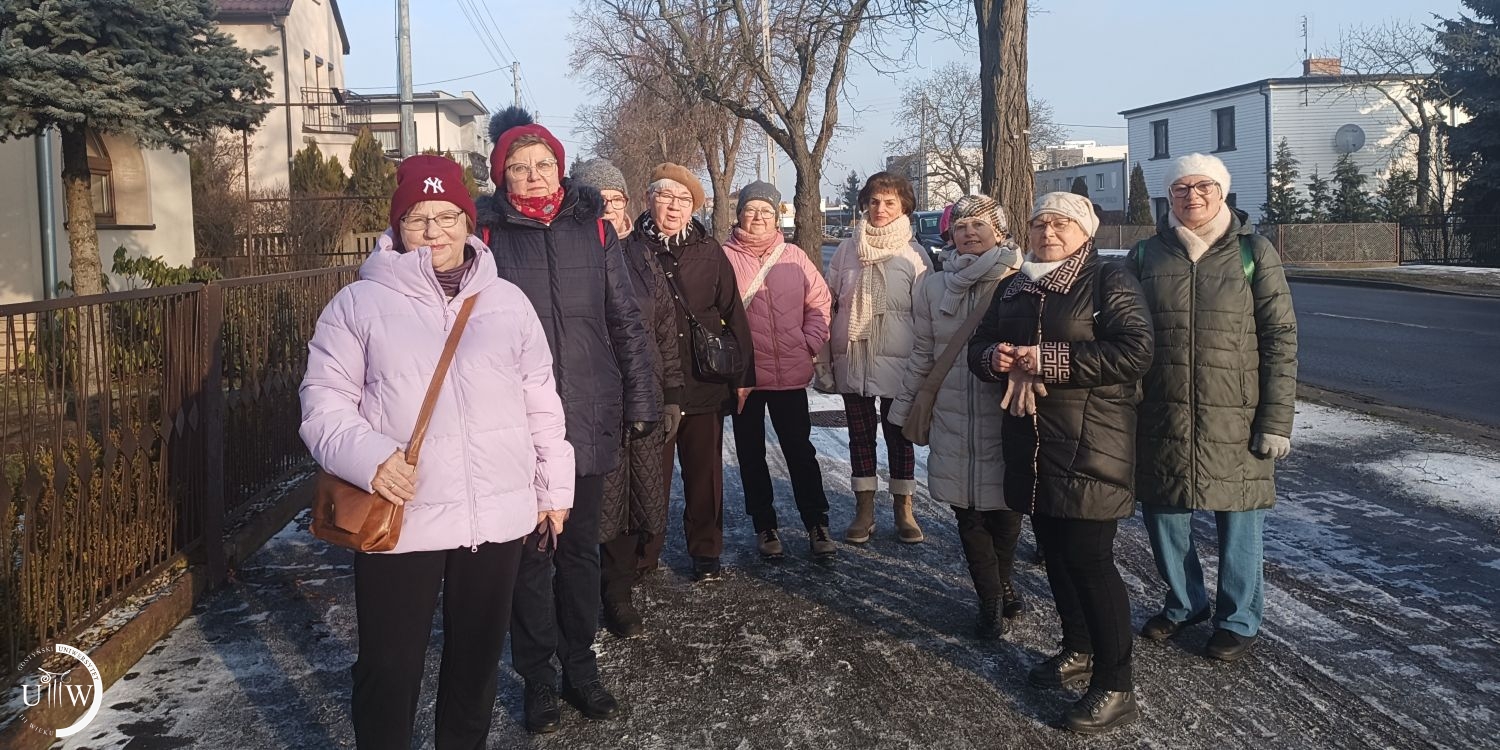 Pierwszy spacer w nowym roku 2026. Jest nas 28 stycznia 11 osób. Temperatura minusowa, miejscami ślisko, idziemy więc „uczęszczanymi drogami”. Miejscami, kiedy na chodniku biało, schodzimy na ulicę, uważając, by jakiś pojazd nas nie sięgnął. I tak ulicą Wrocławską, dalej Wielkopolską, przez Brzezie, ulicę Strzelecką, ulicą Powstańców Wielkopolskich docieramy do Kawki na kawę. Przeszłyśmy 8 kilometrów.