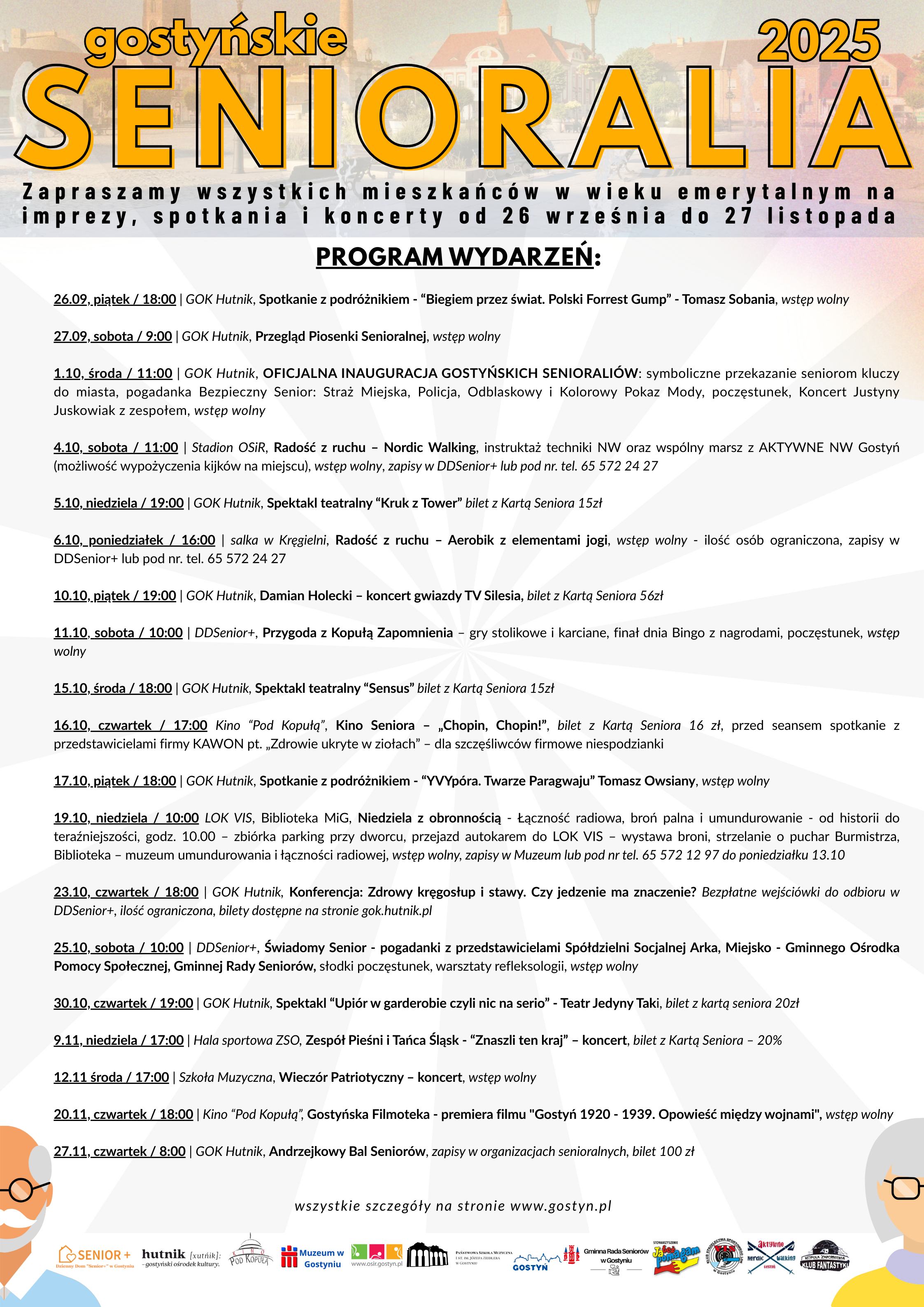 Gostyńskie Senioralia dla wszystkich mieszkańców w wieku emerytalnym od 26 września do 27 listopada 2025